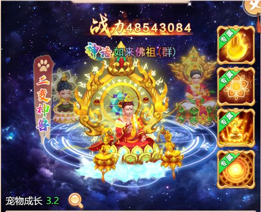 众所周知,游戏里的【如来神佛】,这绝对是一个超级神宠了。 我们一起来看一下如来神佛有哪些技能: “01如来神掌: 这是一个群伤+减攻+破甲的技能,不能能打出伤害,还是削弱对方输出,对比其他群攻神宠简直是吊打一个级别。 “02普度众生: 这个技能主要是免疫与群疗,而且是上限的20%,那简直是打不死的小强了。 “03如来金神: 这个技能在PVP中特别有用,护盾+破甲,别人打你不动,你打别人像切菜一样,