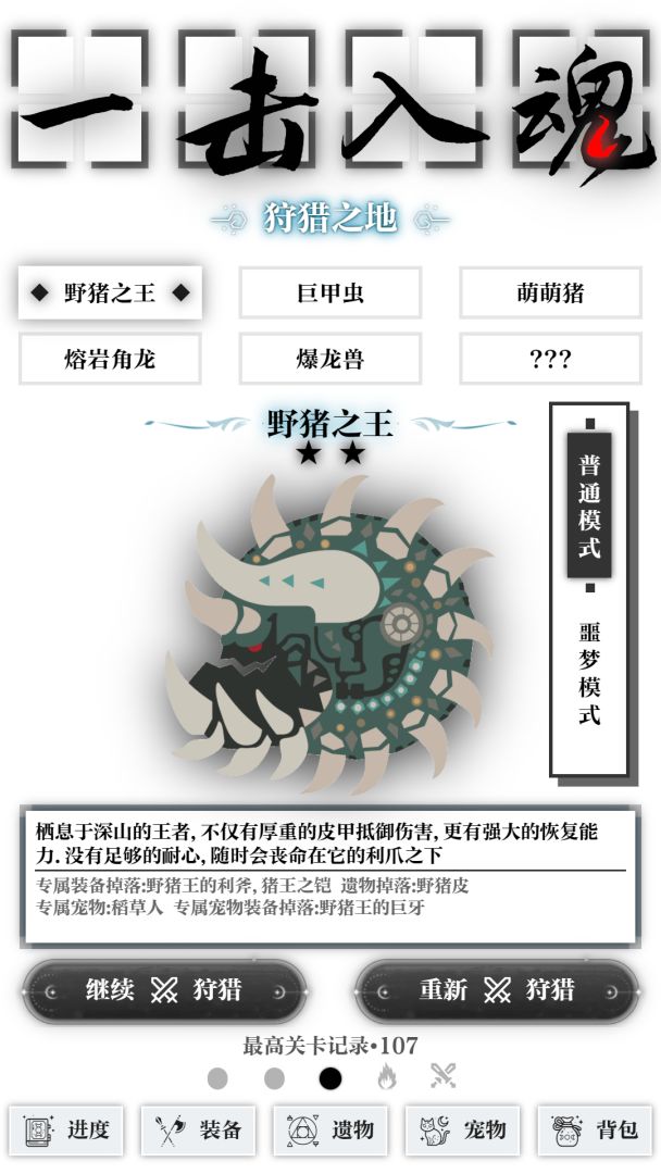 隐私政策 开发者的话独立开发的一款小游戏,一开始不知道做什么,就想简单做个过关打怪的游戏,后面就加了不少内容. 目前游戏还在优化中,后续会慢慢增加一些新的玩法 (注:游戏的boss素材来源于怪物猎人,其他素材来源于网上)