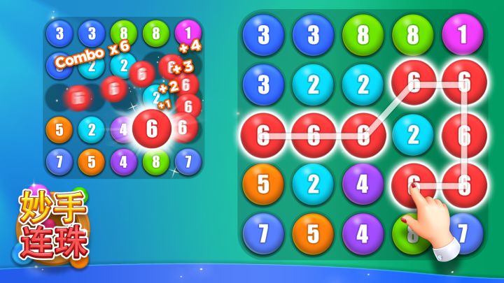 “妙手连珠”是一个令人上瘾的放松数字泡泡合并益智游戏。连接相同编号的气泡以合并它们!创建绝佳的链接并将它们合并以获得更多积分!挑战你的头脑并解决难题,然后你会发现它们简单而令人兴奋!