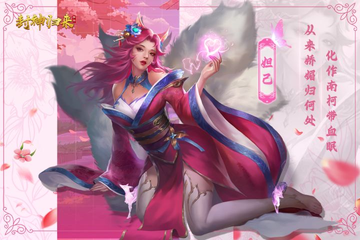 从来娇媚归何处,化作南柯带血眠 商朝冀州侯苏护之女,苏全忠之妹,乃倾国倾城、美艳娇媚、闭月羞花的绝色美女。被商纣王看上之后,其父亲被迫献女于纣王为妃,在去朝歌途中却惨遭九尾狐狸精噬魂而死,并夺尸身附体,然后肉体被狐妖利用来迷惑纣王,败殷商气运。妲己成为轩辕坟三妖灭商的一枚棋子,入宫先后用美色诱引君心,陷害姜王后篡位,逐个将纣王身边的各种忠臣除之殆尽;并发明炮烙、虿盆、醢杀等酷刑,将许多宫人折磨