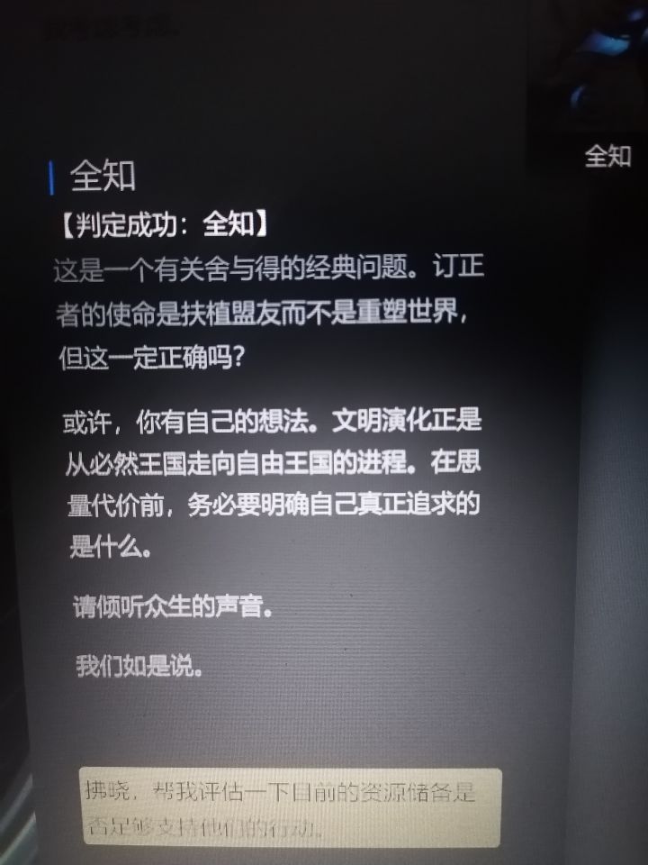 亲自体验游戏本体后,笔者意识到之前的预测与游戏实际稍有出入,故特撰此文予以更正,并加入了更多的解释。(可能存在剧透问题,尚未游玩的请慎看,就在这里打住。)-----------------------------------0.游戏的背景重新检索后,笔者认为游戏的背景,应当是前作《逐光:启航》中,“蓝星文明”挟空想时代之力,冒险推进对冲并成功,顺便把反宇宙“理事会”(蓝星视角)冲烂后的世界