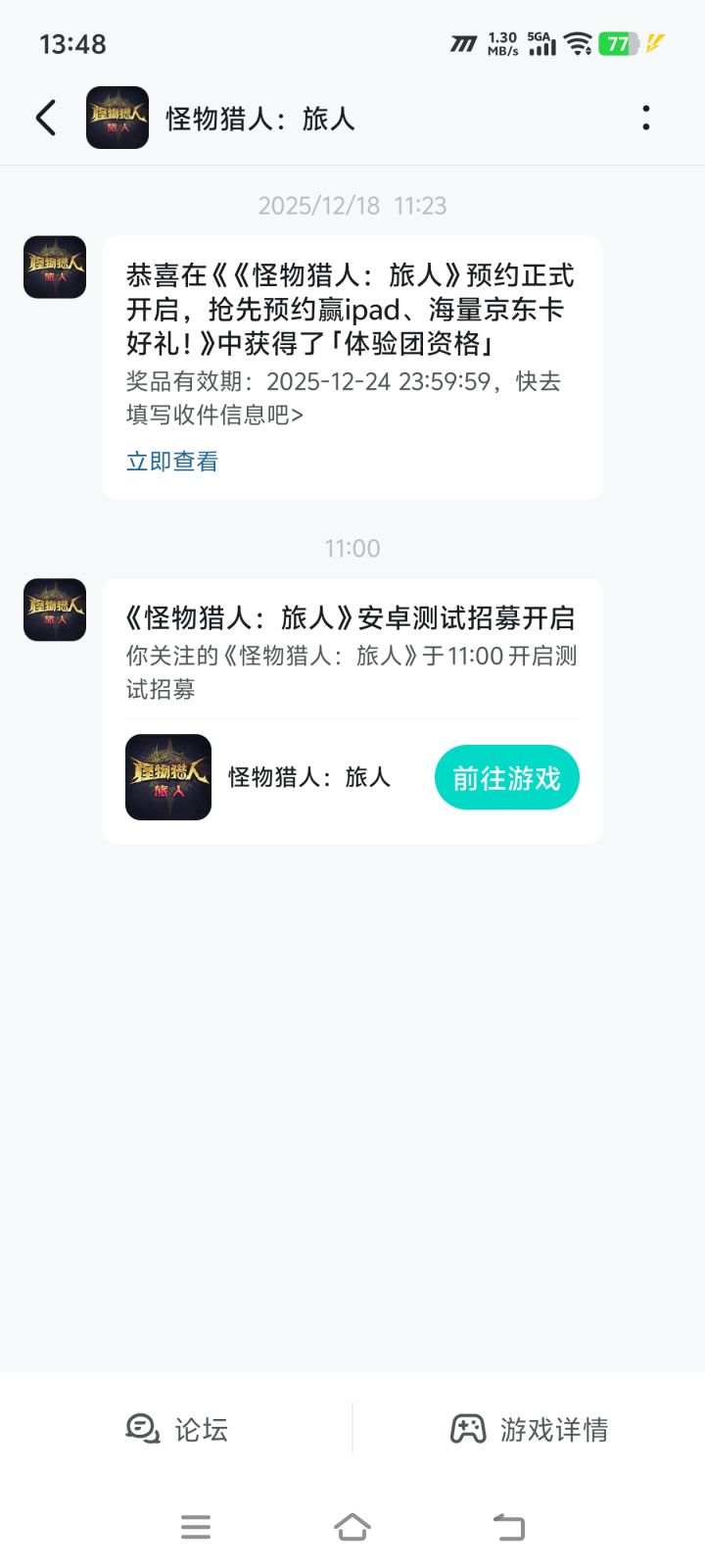 《怪物猎人:旅人》TAPTAP体验团资格已公布!老大请留意短信通知,并按指引加入专属体验团 Q 群。更多福利活动和游戏资讯也正在路上,欢迎老大多多关注!