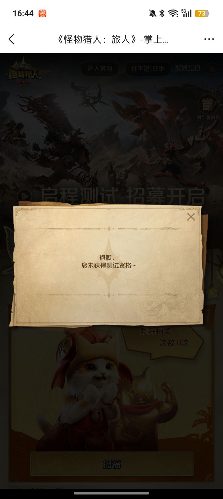 感谢老大的支持!《怪物猎人:旅人》「启程测试」预下载已开启!老大可以通过短信与各平台通知的形式的下载链接,或者官网的下载页面进行游戏下载以下是测试下载指引,以及相关问题FAQ~▸测试类型:限号删档计费测试▸测试平台:安卓▸测试开启时间:4月29日10:00 ▸预下载开启时间:4月27日10:00 ▸配置要求:CPU:骁龙 845 及以上系统:Android 12.0 及以上#怪