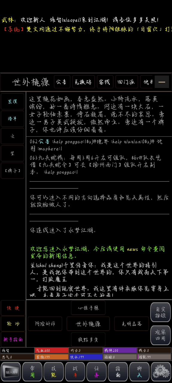 游戏内,这个版本可能聊天显示会显示代码,所以建议新玩家在游戏内,点一下【任务】再点一下【环境】,再点一下第一个,聊天显示,就可以