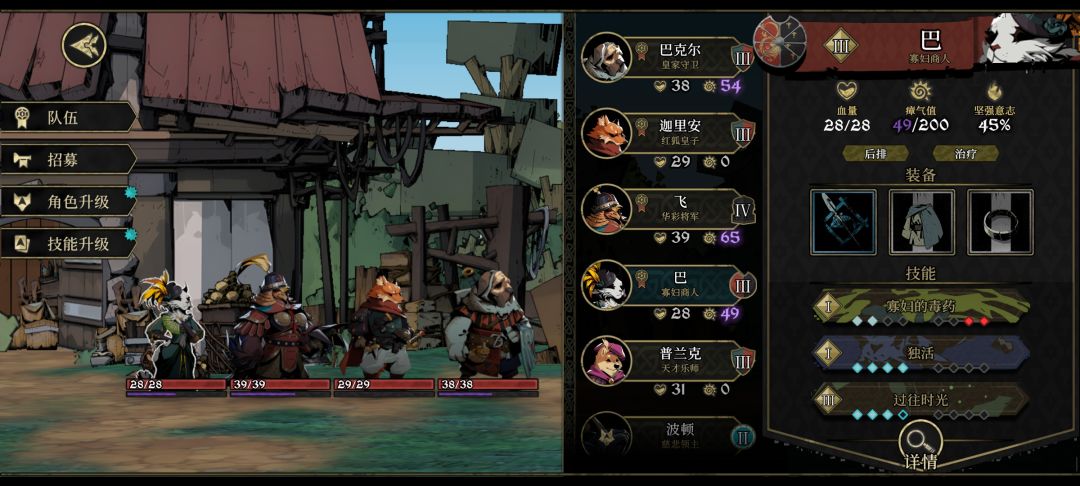 玩了一下给大家说几个建议。 1:银币不多的玩家,角色死了没必要贪图三级技能花2000银币复活,因为很多角色主要也就用一个技能,比如奶妈的回血,皇子的直刺。不如0银币复活用3碎片升到3级在用2碎片把主要技能升到3级。银币很多地方都有用,碎片上阵角色打小怪有几率掉。 2:就我图中的破烂队伍打死了300多血的大鳄鱼,刷紫色装备。主要原因就是有一个必定暴击buff,一刀打鳄鱼四五十。所以刷强力怪前可以地图