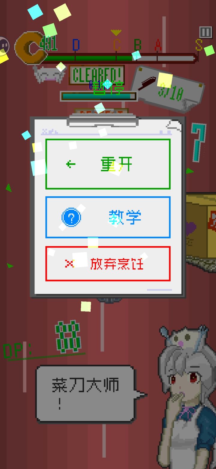 果然很有趣! 前期广告的话大概是每两个客人会来一次,大概5秒钟可以跳过,不过根据广告商的出×尿性大概是要9秒左右才可以结束 →_→ (后期就是每次都会来了QWQ)献上部分自己的心得!(攻略ing1.切菜不用惊慌,有一段时间会连到一起,这时候是最好切的(当然也要尽快哦!不然就全都没了XDD (后期还会增加难度!只有找准时机才能切!要努力变得熟练啊! (请记住每次要切的是屏幕上“所有”图案("▔□