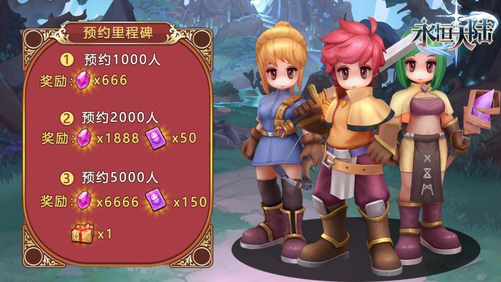 亲爱的勇者:《永恒大陆》自登录TapTap以来,受到很多玩家的喜爱和关注,为了感谢各位勇者大大对我们的喜欢,今天我们上线了安卓预约里程碑奖励!!!本次预约里程碑设置为3个阶段,分别为1000、2000、5000次预约给予的奖励。累计到达下述图片预约次数,公测时即可收到以下奖励啊!!!这可都是白嫖的啊!(´ρ`)预约经不起等待,领取豪礼就现在,各位勇者大大们快带上小伙伴们一起预约吧~#游戏推荐