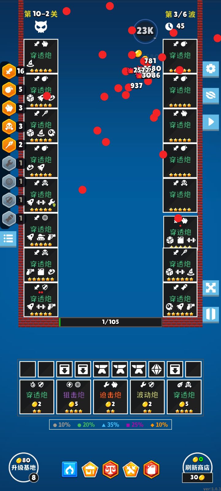 玩了几盘就通关了,但还是不知道怎样让炮台升6星…😑😑