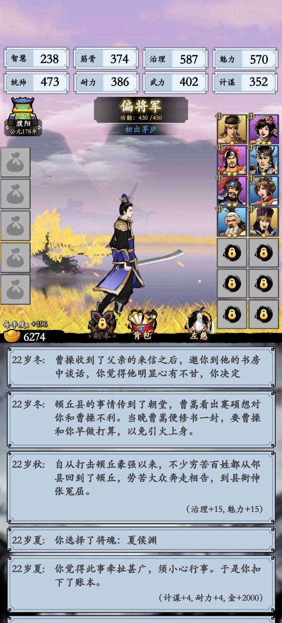 一统霸业线路,熟悉故事前提 为了有钱:10岁看广告,放过,顺从,隐藏账本,助人为乐 不卡官职,文武都行,装备优先耐力 左慈,选重骑减伤,没有就选刀盾,兵种有30左右减伤就够了 3星黄盖,刀盾减伤 5星马超,轻重骑双减 5星袁绍,21耐+长戟减伤 5星周瑜,补计谋属性+蛮兵减伤 最后升级孙权(计谋)或者刘备(武力)两个耐力怪。