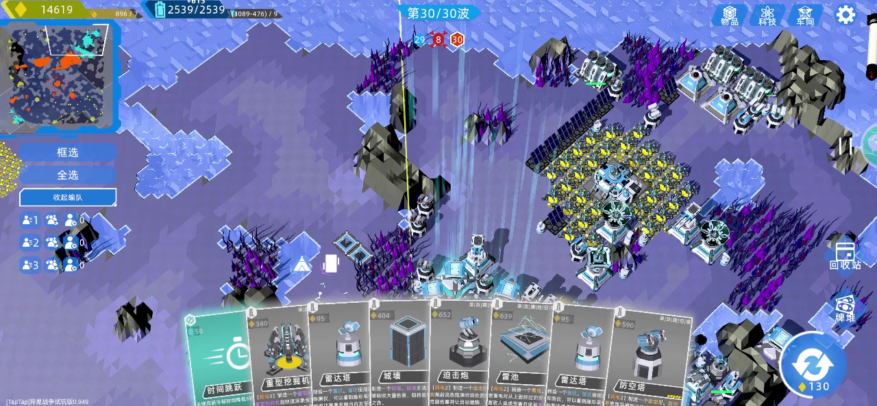 种子86944602,这个种子右下角有巨大的发展空间,左上大矿在一个孤岛上方便天罚偷 前10波的核心目标就是凑出一张点金来复制,如果其他系列的权重都不够解锁五星卡牌,10波开始时的商店几乎必定有精炼和基站,超空间矿机和能量核心能造就造,早一点滚起雪球来划算的多,能量塔和挖掘塔也挺容易出的,商店也有卖 10到20波就是不停的扩张电力与经济,如果到15波脸黑都没刷到离子炮跟狙击塔,直接去科技里买,保证