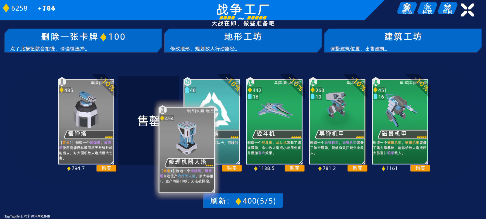 感觉和早期相比 主要是加入了军队系列 增加了耗电限制 基本解除了领地范围的限制 最近没啥时间 就简单玩了玩 正式发售了再整活了 期待正式版咯[表情_送花] 有些个人的体验建议 顺便反馈一下 1 开局的剧情文字 给个直接显示所有文字吧 动画太慢了 2 在选牌、购买等时候 显示当前该卡牌在背包已有数量 方便直观地规划 3 卡牌信息里的合成部分 感觉文字还是不够直观 能不能做成点一下可以扩展成图片
