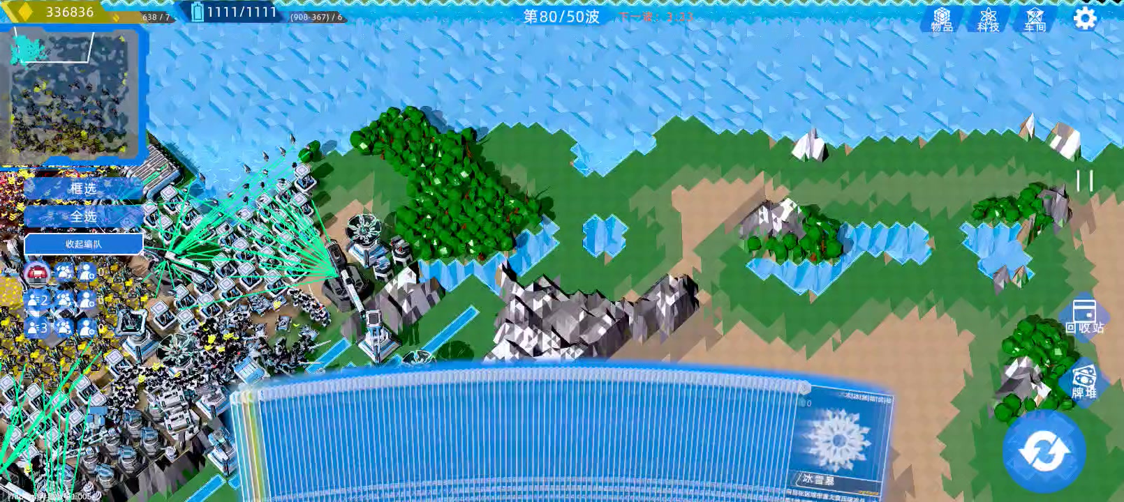 太卡了,卡成PPT了,视频是拆建筑加删卡后才没那么卡,在60波把建筑卡,军队卡,战术卡最顶级的都解锁了,但是军队一多就掉帧,打完一个阶段等上4分钟才下一波实际要等上两三倍时间(建议作者缩短时间),删卡金币永久成倍增加到后面很难删的起。最后祝作者大卖,游戏还是很好玩的。