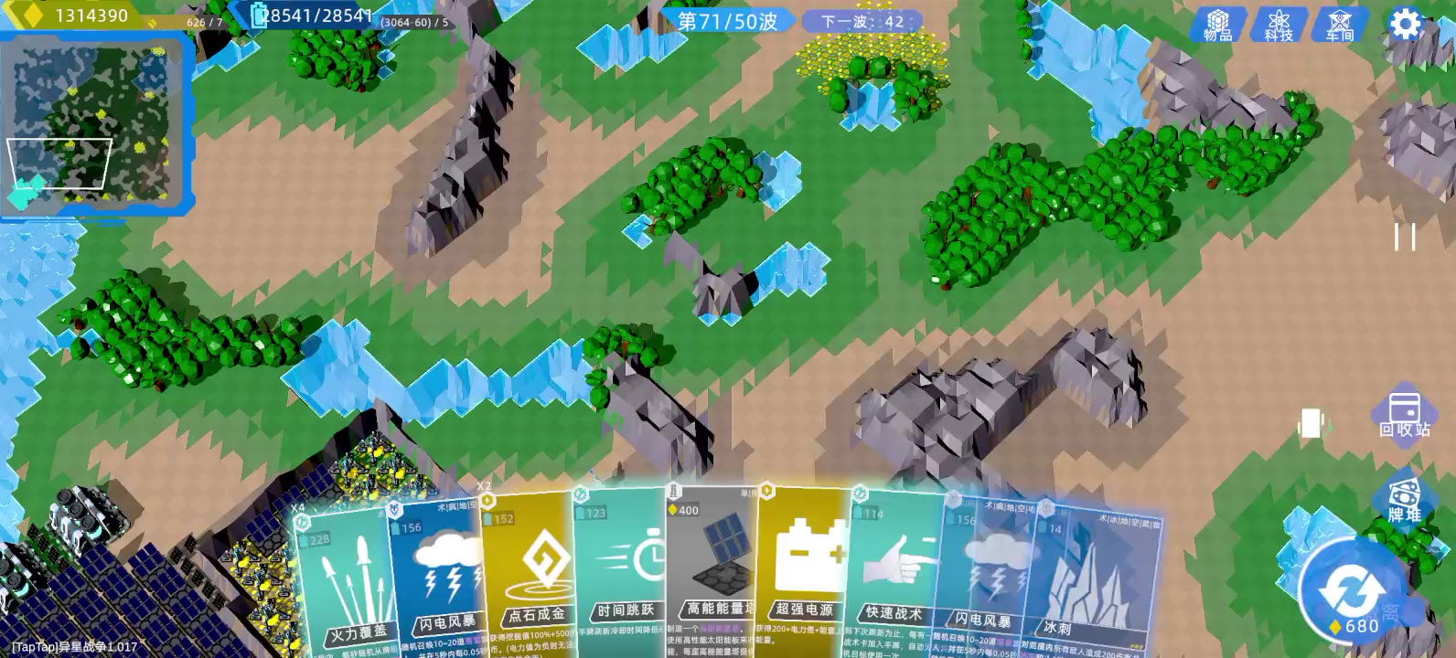 不需要太多塔防,怪出来就秒,卡?不存在的。 原本玩建筑塔防的,结果商店出了张超武卡,这超武的权值来了,谁能忍住不去玩呢。 建筑大师没有超武权值刷超武的概率太低了。有时候一局下来都碰不到一张。