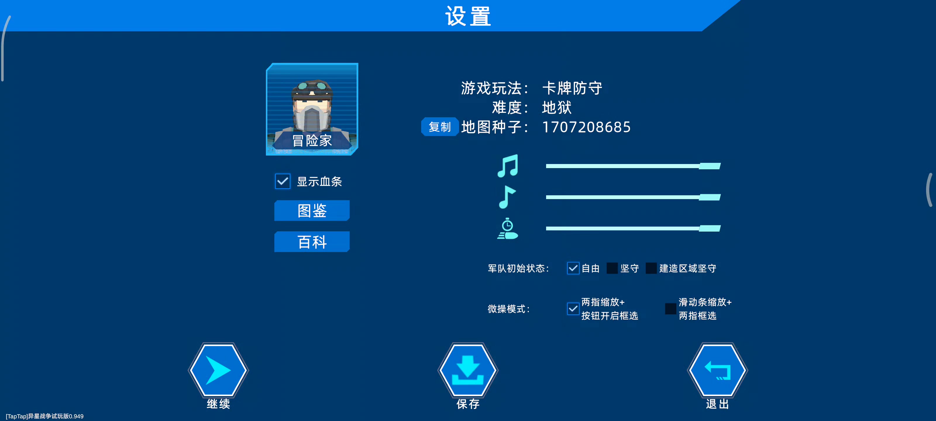 喜欢塔防类游戏的,而且不是那种固定位置的,会爱上这个游戏,在内侧版本中,采用的入门到地狱都是30关的模式,我一直用的视频里的那个图,简单说一下,过关模式,机械化操作,稳过,我下面说的内容只适合塔防流,机械化操作,异星战争还有军队流,战术流,太吃操作了,等正式版本以后再讲。 首先开局,落地,观察地形,我那个图,在左下角落地,有稳定的大后方,可以放电场, 前10关,只点科技,跟金币有关的点满,卡片只拿