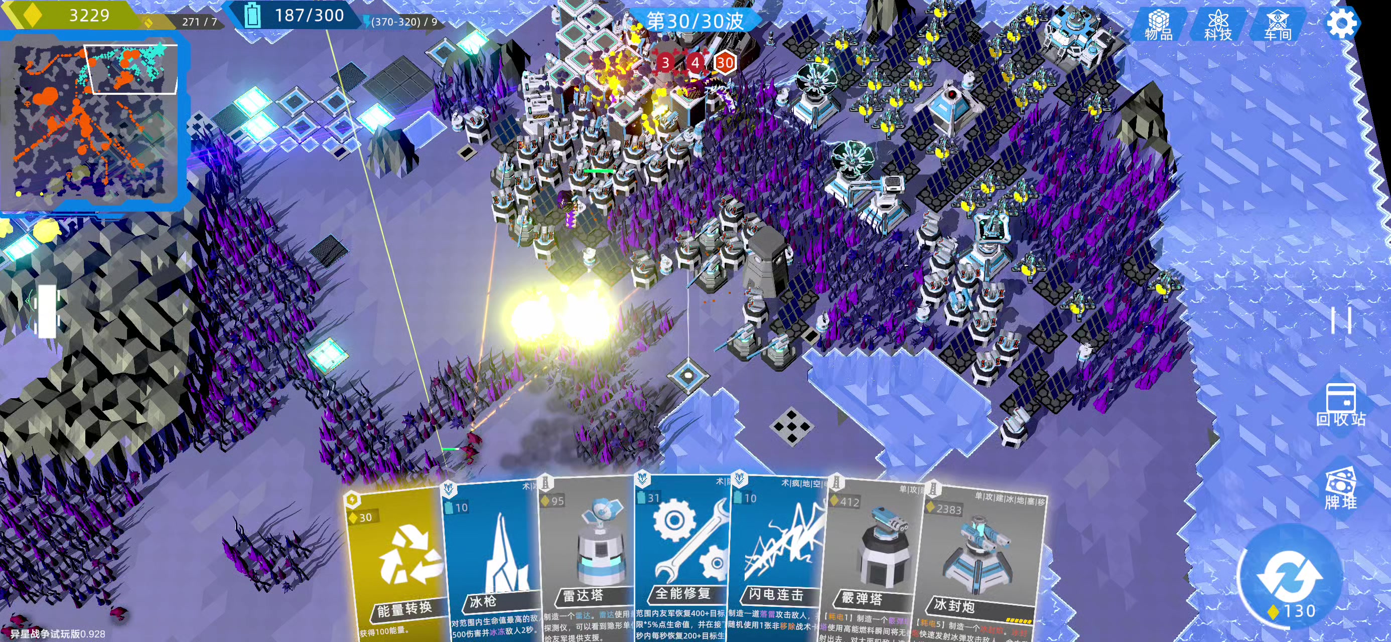 最爽的流派,比成型的要塞还爽,要塞是那种挂机通关的爽,超武流是一下秒杀一大片的爽,不过这个流派翻车点在于小心偷家的蠕虫,记得备两个高级维修,超武流玩到后期高级维修就是五秒无敌,打那个石头人就是一张牌直接秒,最爽的流派