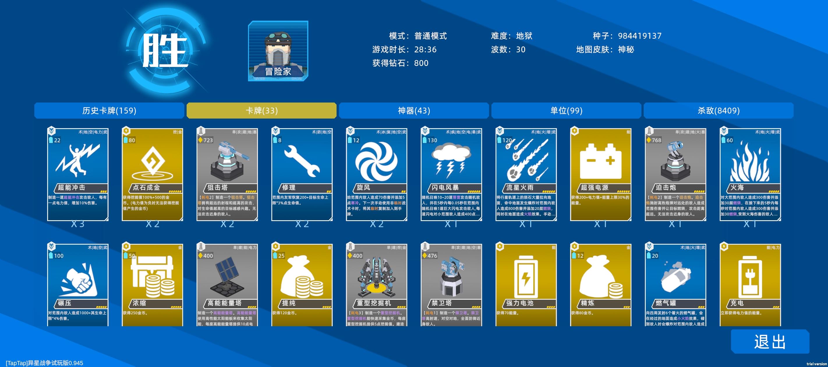 卡牌也忘记删了,就建筑加术法,矿也没清完,这样也能过,倒是比不上其他帖子的大佬,后面尝试一下其他流派