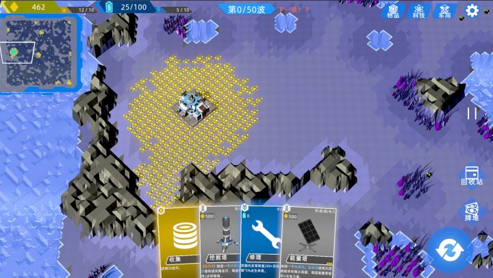 (记小本本的核心要点,一般人我不告诉他)开局选个好位置降落,可以延缓怪物攻击基地的时间,争取更多的刷新卡牌和逛宇宙商人的机会。10波前都可以只拿金币系卡牌和神器,用基地+机枪塔+修理,完全抗得住!用哨兵,炸弹积极去挖小矿,及时点提前出怪,刷新手牌,最大化获取金币数。(哨兵打完一片小矿不动或开始打附近大矿怎么办?先点小地图下方的 回防,军队会开始往基地方向行进,等走到合