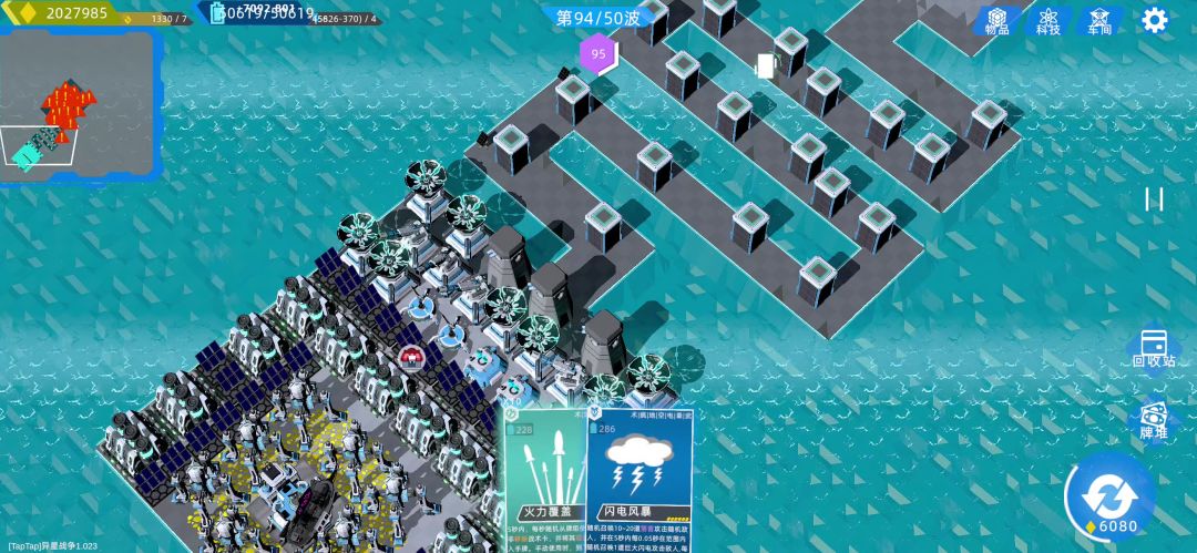 打了两遍。第二遍换了打法。刷资源卡,也是用上了点石成金。碉堡肉的离谱,至少这个单独Boss根本打不动,还有一个维修站和3个维修塔。如果一局能出3个碉堡,挨打位置就卡好了。复制了特斯拉作为主输出