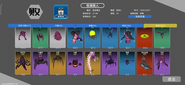 在普通模式45波次一起点了9/10变异,很快家被推干净了,之后bug出现,家一直卡住了血量,用战术卡解决了围攻的敌人。在51波准备时建造了建筑,奇迹没出现,石头人两拳轮爆了基地