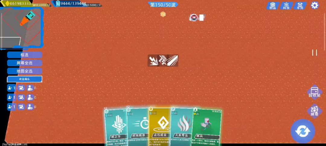 1.规则武器选择:有钱任性,超级电力,无限供应,超级加倍,空间叠加。 2.前五波除了一个机枪,不造任何防御建筑,也不选任何建筑卡牌 3.出来的卡牌,只选金币,挖矿机,发电机,其余的全不要,优先挖矿机和发电机,金币卡优先级最后。