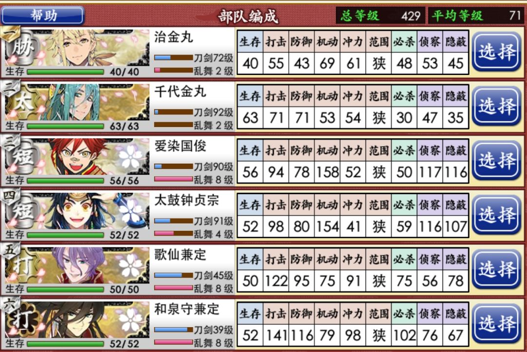感觉能作个参考队伍, 治金丸,1级就能上班,就是得放队长 千代金丸,到50~60级就不会被对面水炮冲没 极短X2,不挑,但要80~90左右 极打X2,刚极化回的都能上,不过三花偶尔顶不住被削,四花的可以因为有三槽刀装能活(平替极太、极胁估计都行) 进阶plus版(队伍见P2图片) 前提: 1、治金丸和千代金丸(普)已99 2、拿到丙子且是1级,我这已经练的差不多了 二槽极打可以换成丙子,1级放队长