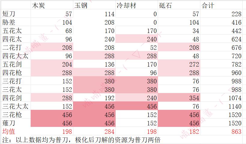 省流版:推荐搓糖只用短刀,其他刀刀解 封面为刀解和搓糖的资源对比(一次乱舞7所需的刀刀解后能获得的资源)。感谢 🍑。大佬的提醒和校正 以下为详细版攻略: 1.搓糖是指同名刀习合到乱舞4给3*500经验的根兵糖(由于太少一般忽略不计),习合到乱舞7给6*10000经验的根兵糖,正常说搓糖的都是大糖 2.一花搓糖需要57振,二花52振,三花38振,四花24振(源氏实际为四花太),五花17振 3.通过计