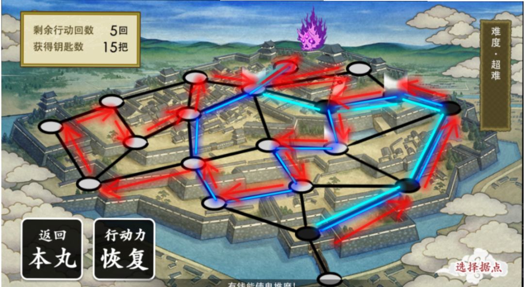 与乐器收集阶段的相同点 ◆虚拟伤害,无特殊战场,需要门票 ◆除薙刀外,全队剩余刀剑≥2时,不会对队长造成伤害 ◆队长重伤/败北会强制回城 ◆强制回城获得玉数量变为1/4 ◆在活动结束后,乐器不会消失,玉会消失 ◆乐器可在【景趣】→【乐曲兑换】中换近侍曲 ◆全部奖励发到信箱 与乐器收集阶段的不同 ◆仅BOSS点可获得乐器 ◆乐器掉落率极低 ◆需选择路线 ◆敌军包括短刀、脇差、打刀、太刀、大太刀、枪和