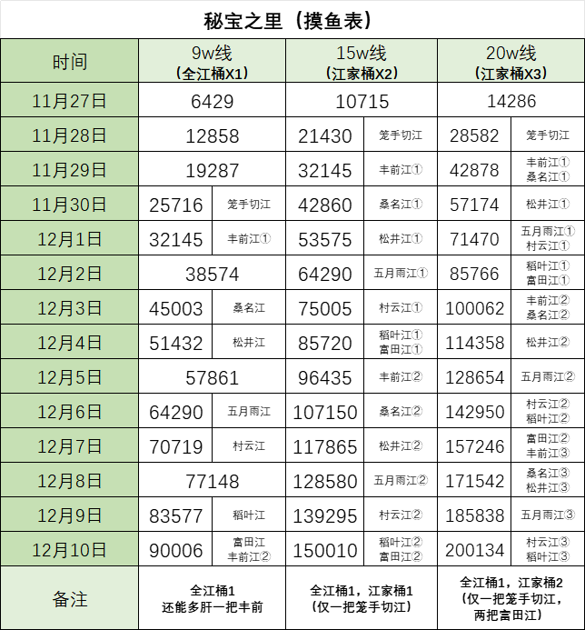 做了复杂版和简版,和上次秘宝天数是一样的,所以具体数据没什么变化,各位同事随意选择取用,秘宝之里稍微要动点脑子算算选高点分的牌凑组合 简表智熄小错误已修正,如果知道错在哪了可以翻我第一个秘宝咸鱼表对照看一下就知道()