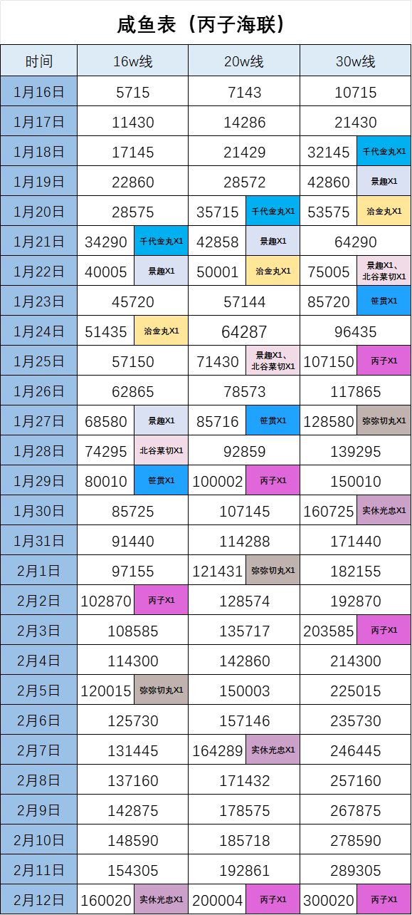 各项资源差值很大,打算通过普图捞资源来配平一下。资源来自活动、任务、远征,普图等等。 木炭主要打3-3,砥石看情况可能打3-4或者4-2,配平后打4-3过渡。平时练刀捞刀应该会在5-4,7-3,8-3,8-4之间跑。应该每天都会记录一下资源数。大庆5000积分强娶了,八丁南瓜捞到了,等后面会上线的面影(希望等我攒够了保底再来)。 资源数按木炭,玉钢,冷却材,砥石的顺序记录