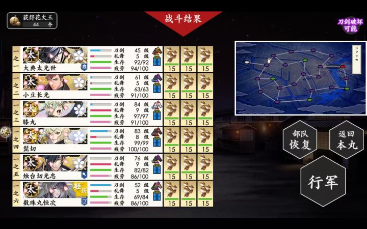海联没有刷到修行道具,勉勉强强到2.6w ,刚刚打完6图拿到了一套把博多送走了,想着去这次的新活动升级,没想到掉了2把大波若长光,1把南泉一文字,1把太郎太刀,1把岩融,两把物吉贞宗,3把蜻蜓枪,2把浦岛虎彻,不记得几把烛台和狮子王,这个活动掉率是这么高的吗?我已经养好一队99的太刀了,后面的还需要练吗?极短目前只送一个一个,太鼓后藤目前还没有锻出来,活动出来的协差建议升吗?还是升锻出来的笑面青江