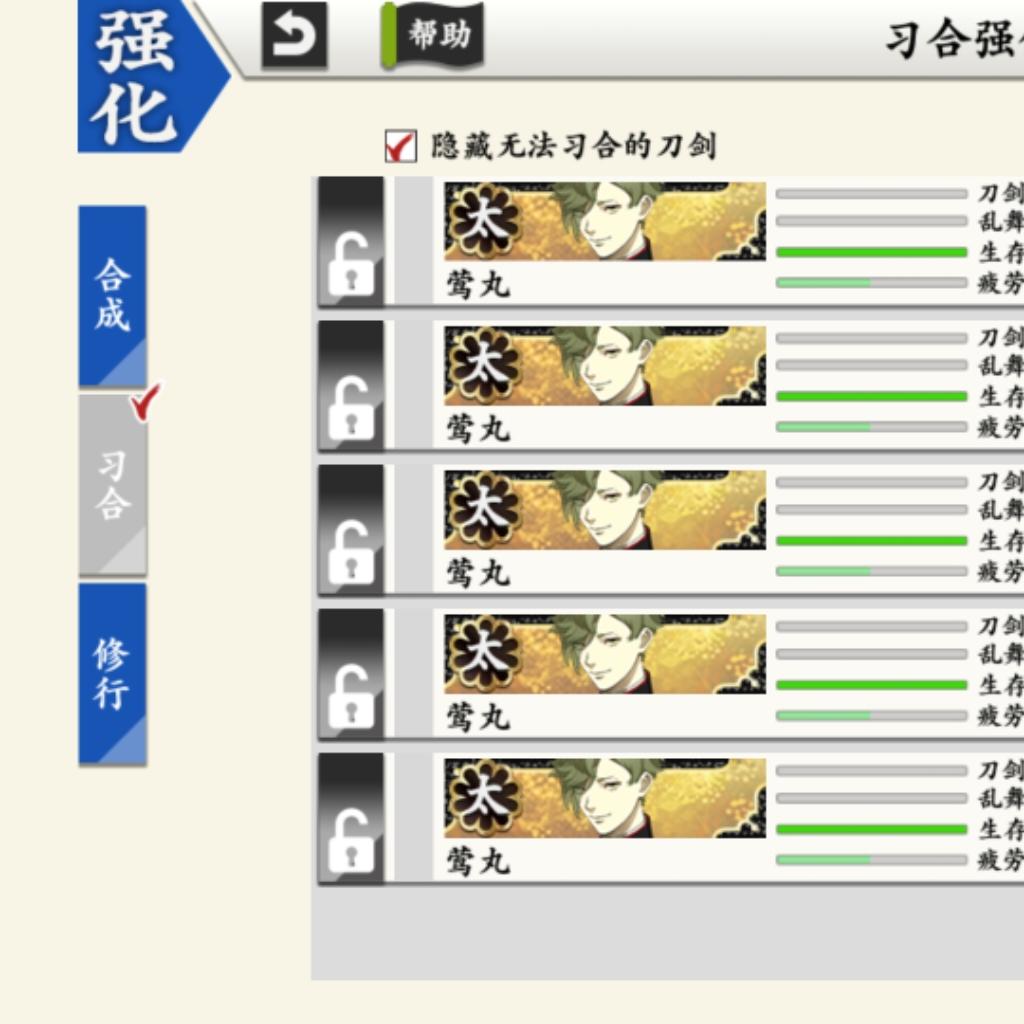不是第一次打这个,第一次打是退游前打过一次,那时候不会玩。各种受伤。现在嘛,嘎嘎乱杀。治金丸千代金丸,把剩下的全带极短。打合战场也有1000多。香这些难度战场掉的刀没记录。不过我一直是打第四个。还掉了一把千代金。我要对我的小判下手了。671487变701631(最爱远征大成功三个字。),,,,,好省,活动活动,等下次活动~~~#
