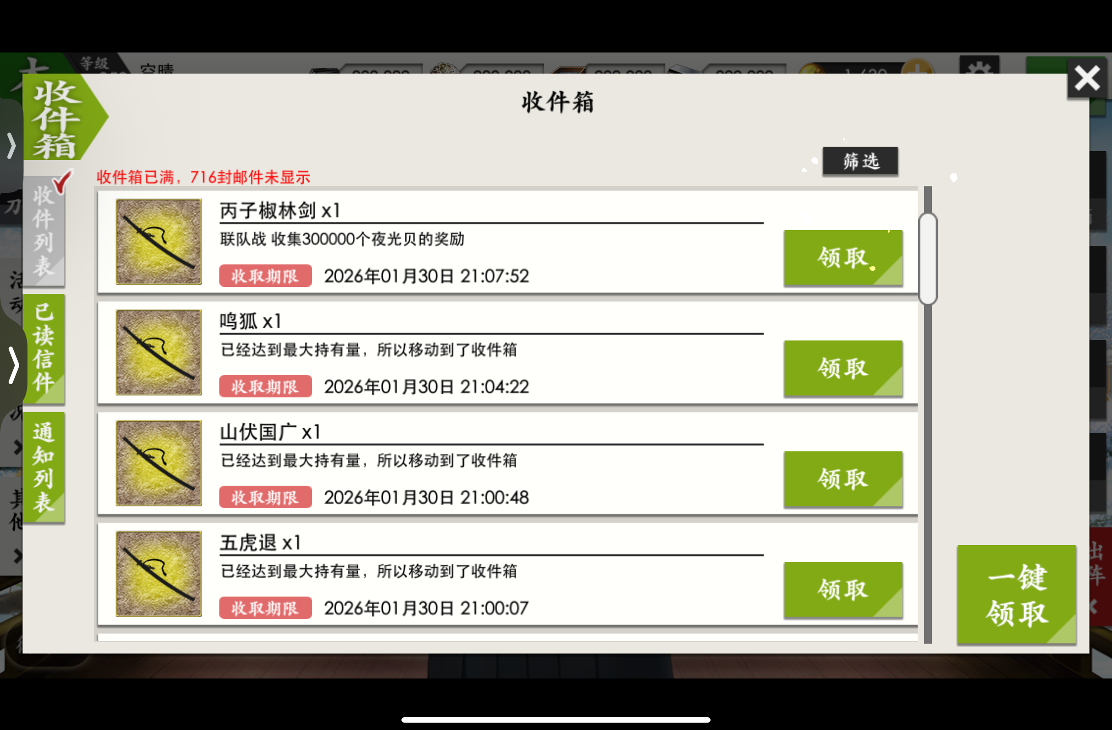 记录一下,七星剑限锻时候出的刀刀们