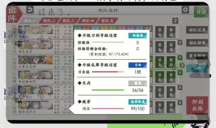 最近的情况就是已经把一队短刀都练到99级了,正在一个一个送出去极化,现在只送到第二把,太鼓钟贞宗才拿到第二封信,然后三槽太刀在已经练满了一队的基础上,又凑出了一队,跟着xp练了切叔和千子村正。那现在我的e4练级大概有几种选择A.给太刀积累经验B.给短刀积累经验C.练99级胁差准备极化D.练99级打刀准备极化E.给萤丸积累经验不知道选择哪个会让我以后可以舒服一点呢?