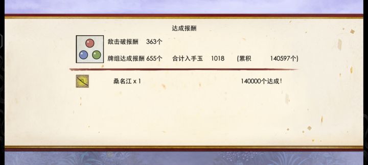 存一下花牌记录,第一次打花牌我还是萌新只敢躲着敌胁差和短刀走,如今我将携高等级极刀归来平推此花牌!我将永远记得上次花牌打最后一局打完刚好够二十万时昏睡过去了,五点整突然惊醒点下继续行军然后活动结束给我踢出去了没拿到最后一把稻叶江。这个花牌还是太好睡了我再也不拖到最后一刻赶进度了。拿到小小江了我将撤离这个秘宝之里