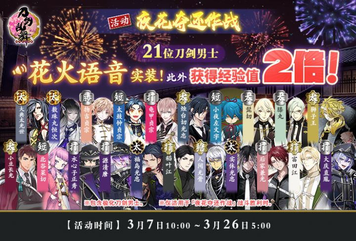 本次夜花的二倍经验刀附在P3了,另3倍结束时间在3月7号10点哦,不要错过这个小尾巴w