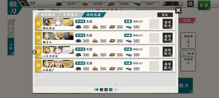 记录一下收获带图的刀剑是一二号机乱舞还没有叠满的