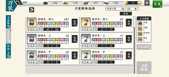 短:小鼓24+87 不动14+44 谦信22 太阁3胁:物吉56+45 泛尘6打:长曾弥38-9 南泉29 太:大菠萝1+58 小豆25 小龙12-9 小狐丸6枪:日本号15+38满乱:大般若,小鼓,不动,号叔,物吉 小龙加强锻刀12w数珠丸2 小乌丸2 小龙 千子2 明石 龟甲2