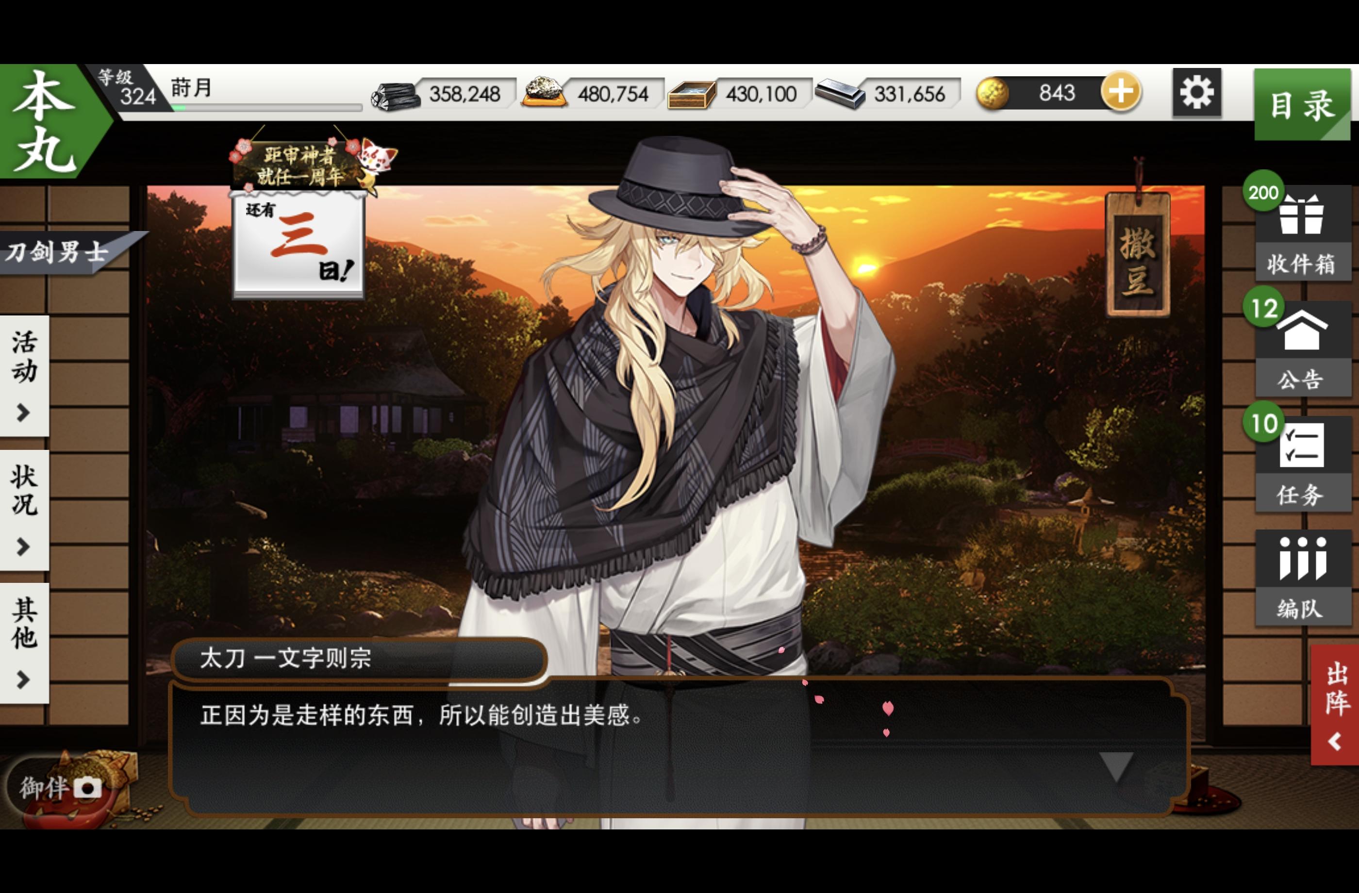 也是当了一年审神者了呀目前离普刀全刀帐只差石田了刀刀们也极化的差不多了收获满满的一年捏