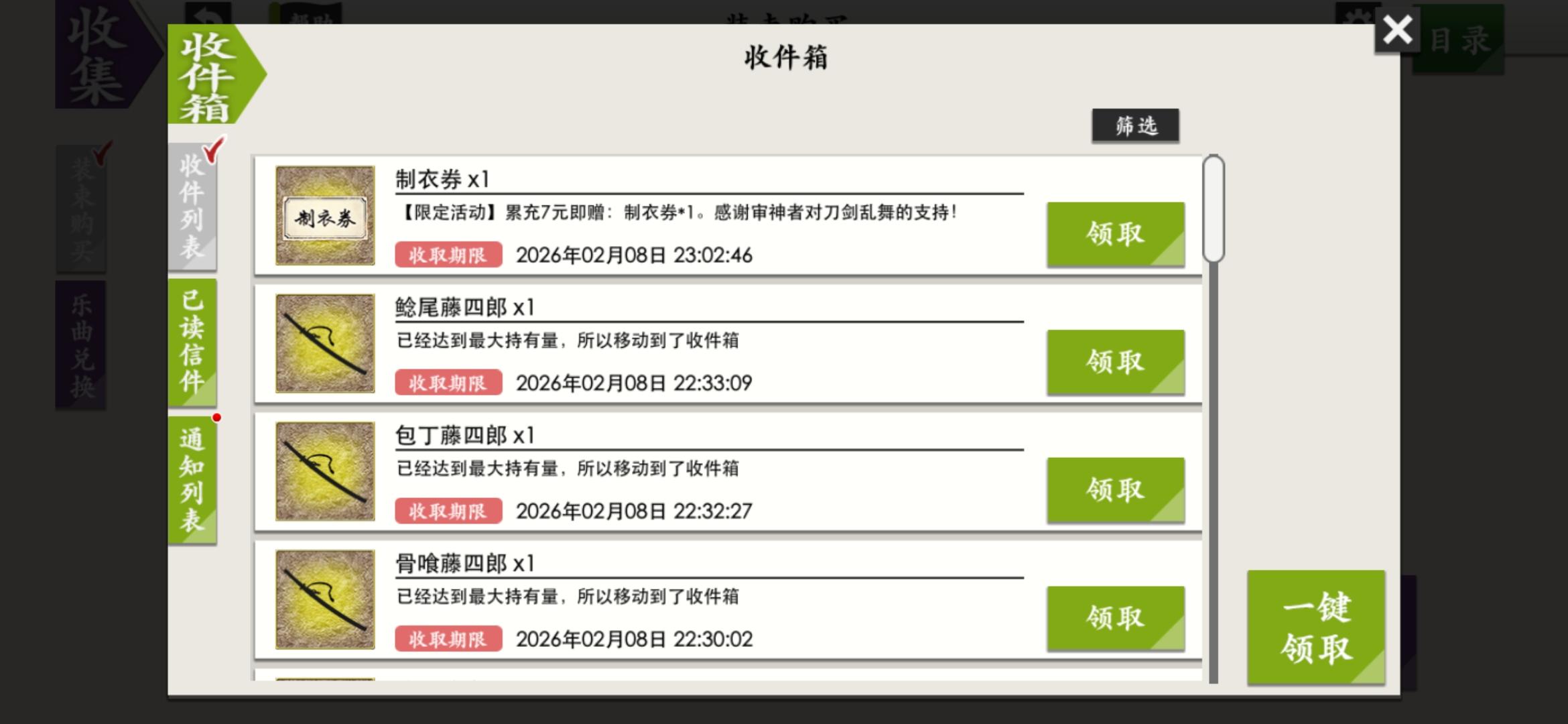 记录一下,七星剑限锻时候出的刀刀们