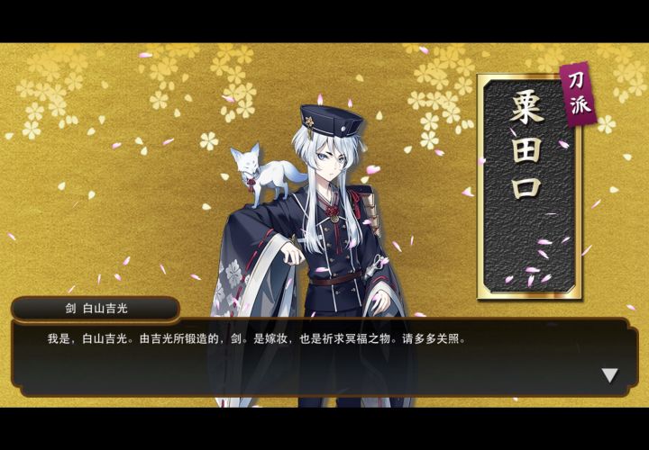 记录下花火的稀有掉落不肝了,肝不动了,该掉的都掉了(泛尘一振,小龙一振,小狐丸两振,南泉三振。其他都掉得蛮多,已经心满意足了)堂堂完结!(泛尘也直接练满了普99,爽了!)拿鹤镇个楼
