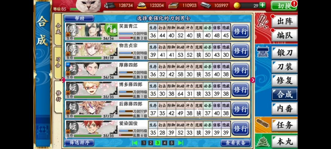 之前一直不想去打图6因为太容易受伤了,结果这一回修复时间为0,趁着这个机会一天把图六全过了。 结果点开修行界面太棒了,有6页。
