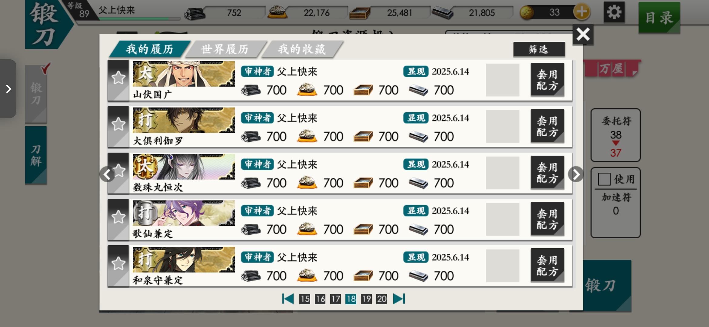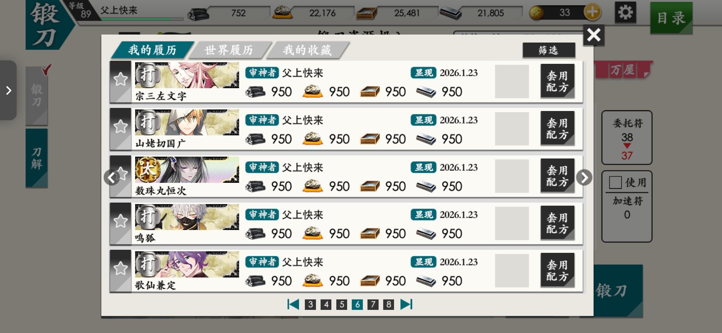 打完海联的30w了,练级无聊打算一天10连锻刀看看能不能出七星剑#刀剑乱舞online #游戏日常 #