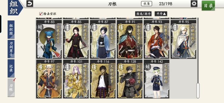 短:小鼓24+15 不动14+1 谦信5 太阁3胁:物吉40 泛尘2(0308)1(0309)打:长曾弥16 南泉8 太:大菠萝1+23 小豆4 小龙3 枪:日本号12 差3泛尘2道中掉落 满乱:大般若,小鼓,不动 物吉差16