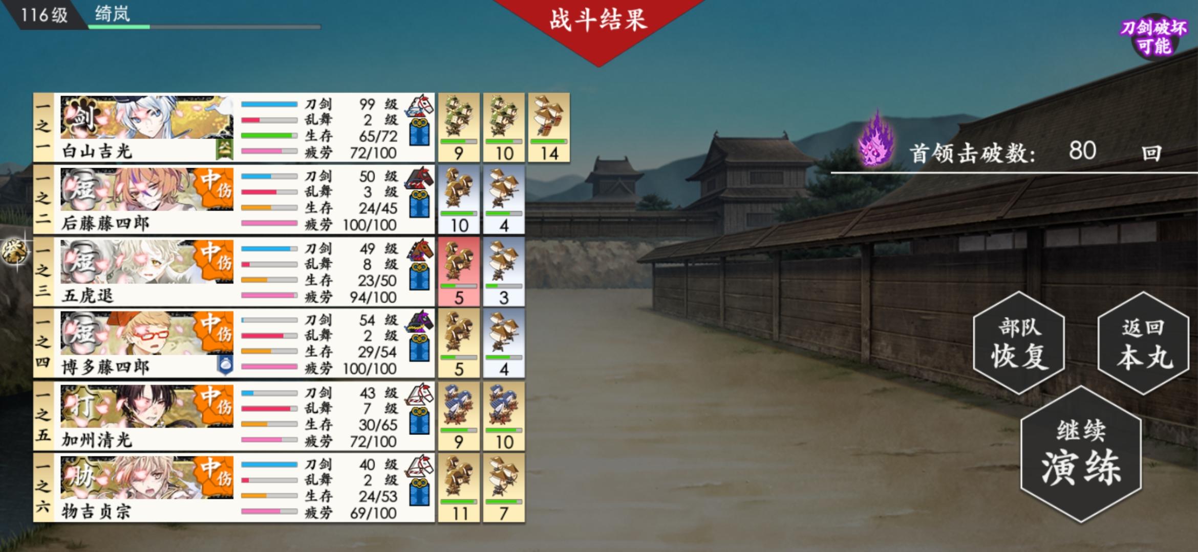 主线8图全推完了(趁着活动还挺方便)这两天加急练短刀刷经验7-4居然都快1000回了(有点肝×)博多极化修行还没回来……练一队极短好难