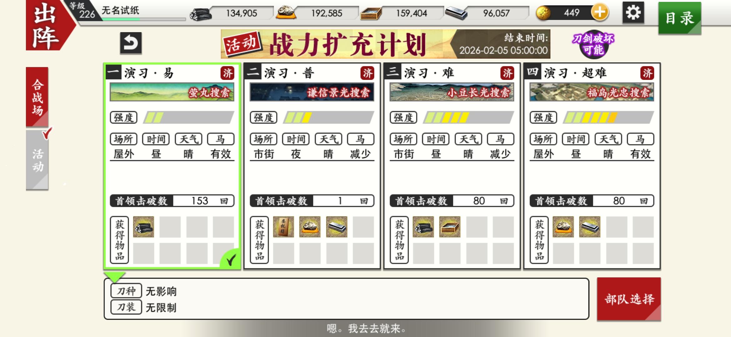 接下来战前合宿大家开哪个图的检非啊还有我几年没玩了这种活动虽然零修刀资源但是修刀时间会有什么变化吗还有刀装会坏吗也没有很详细的活动细节目前有一振极薙刀还有一对极短四振极打四振极太一振极大太想问下我这种哪个图开检非比较好哇