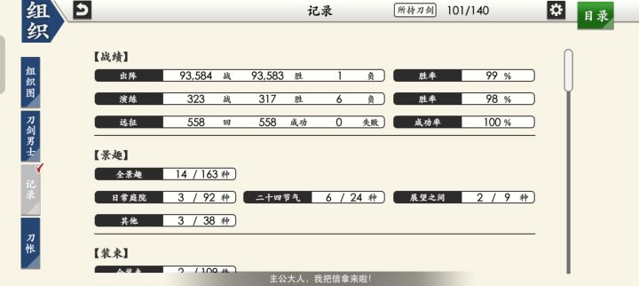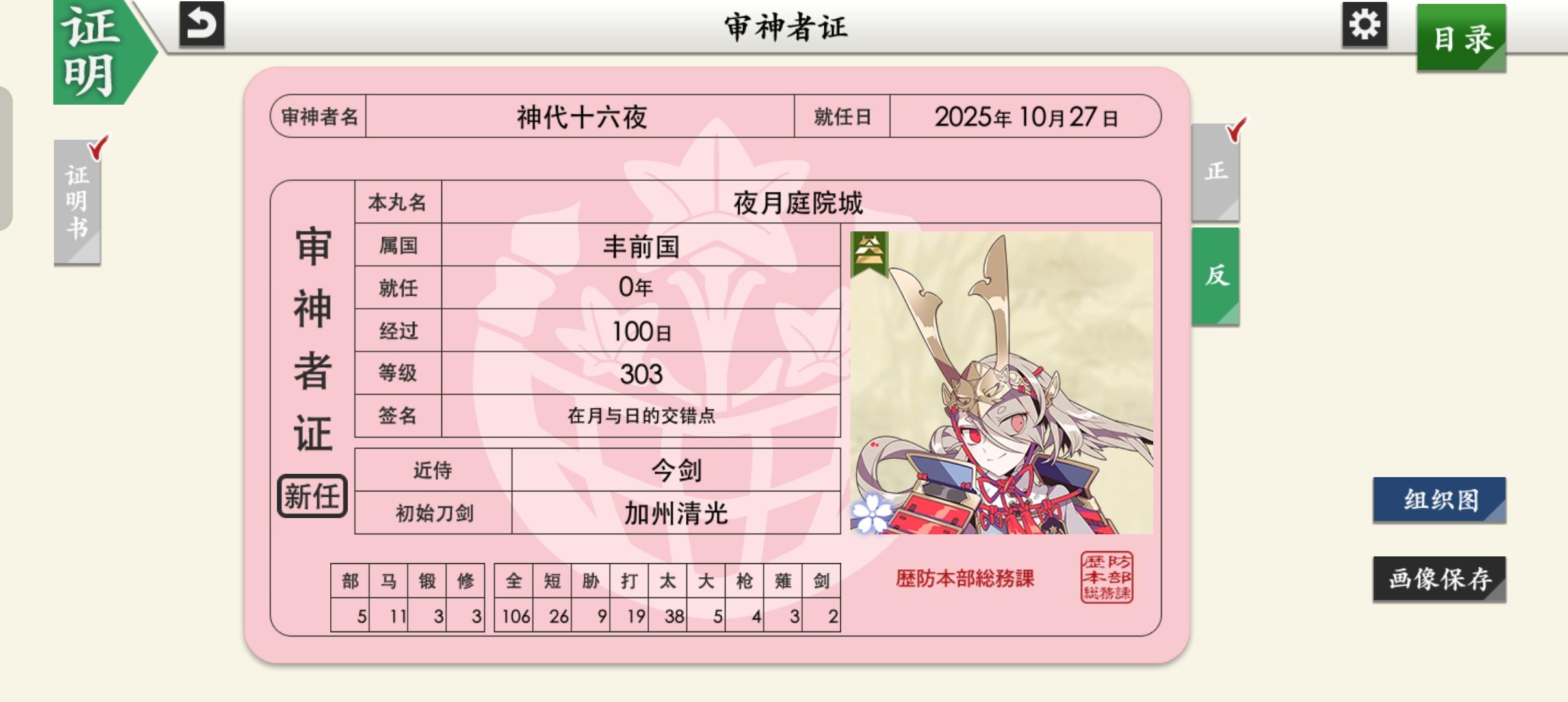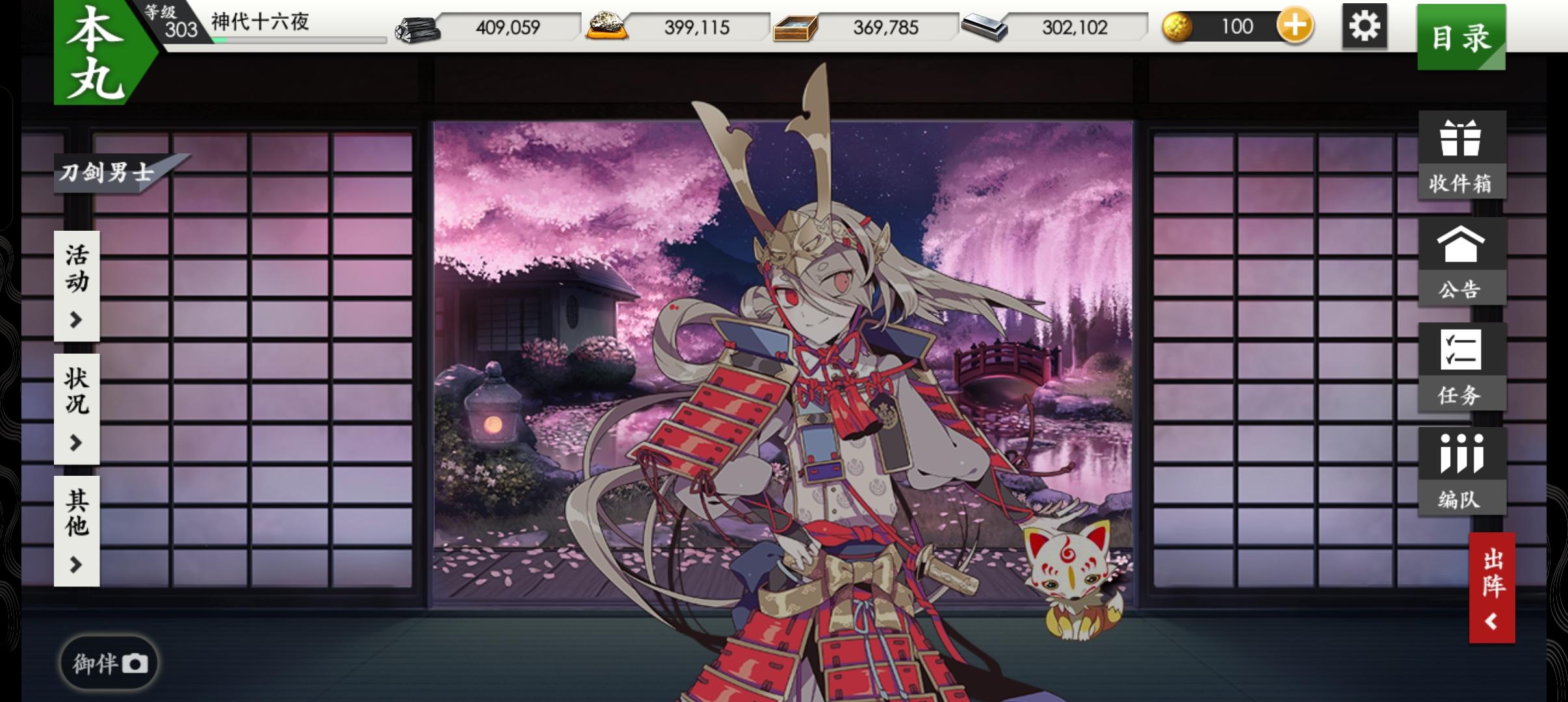 部桑镇楼⦁֊⦁之前只是在看同人,1.8才决心来来试试游戏的,听说地下城很适合练级所以在地下城泡到结束养出了一个太刀和大太刀混合队伍,中期卡第六章才知道要练短刀所幸也肝出了一队,结束前两天在80层捞到了白山,满配队冲到95层下不去了,听说90+层没有丙子很难打所以准备捞一把丙子·͜·目前药研博多信浓已极化,乱修行中,回来准备送不动去但是道具不齐,7-4不知道咋过_(´ཀ`」 ∠)__ 前些天为