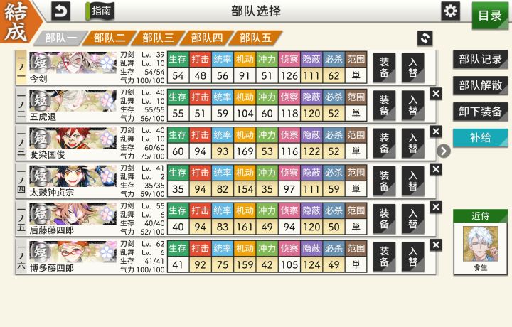 部桑镇楼⦁֊⦁之前只是在看同人,1.8才决心来来试试游戏的,听说地下城很适合练级所以在地下城泡到结束养出了一个太刀和大太刀混合队伍,中期卡第六章才知道要练短刀所幸也肝出了一队,结束前两天在80层捞到了白山,满配队冲到95层下不去了,听说90+层没有丙子很难打所以准备捞一把丙子·͜·目前药研博多信浓已极化,乱修行中,回来准备送不动去但是道具不齐,7-4不知道咋过_(´ཀ`」 ∠)__ 前些天为