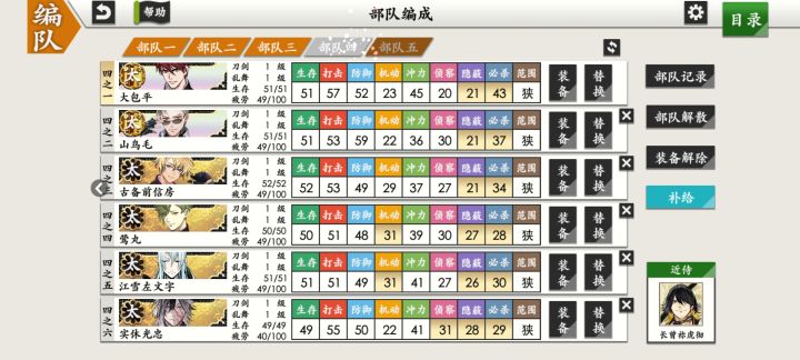 部桑镇楼⦁֊⦁之前只是在看同人,1.8才决心来来试试游戏的,听说地下城很适合练级所以在地下城泡到结束养出了一个太刀和大太刀混合队伍,中期卡第六章才知道要练短刀所幸也肝出了一队,结束前两天在80层捞到了白山,满配队冲到95层下不去了,听说90+层没有丙子很难打所以准备捞一把丙子·͜·目前药研博多信浓已极化,乱修行中,回来准备送不动去但是道具不齐,7-4不知道咋过_(´ཀ`」 ∠)__ 前些天为