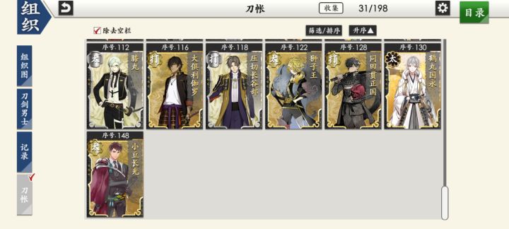 部桑镇楼⦁֊⦁之前只是在看同人,1.8才决心来来试试游戏的,听说地下城很适合练级所以在地下城泡到结束养出了一个太刀和大太刀混合队伍,中期卡第六章才知道要练短刀所幸也肝出了一队,结束前两天在80层捞到了白山,满配队冲到95层下不去了,听说90+层没有丙子很难打所以准备捞一把丙子·͜·目前药研博多信浓已极化,乱修行中,回来准备送不动去但是道具不齐,7-4不知道咋过_(´ཀ`」 ∠)__ 前些天为
