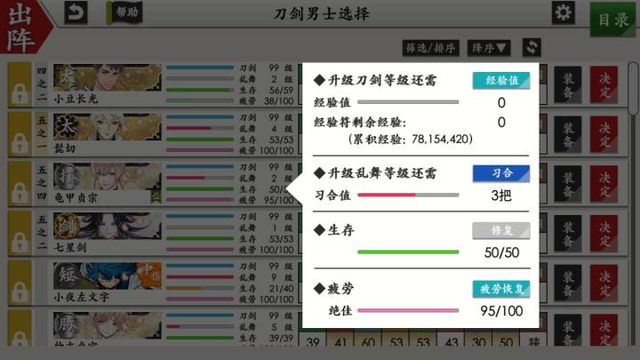 目前药研博多信浓已极化,乱修行中,回来准备送不动去但是道具不齐,7-4不知道咋过_(´ཀ`」 ∠)__